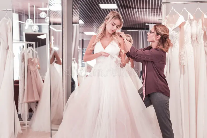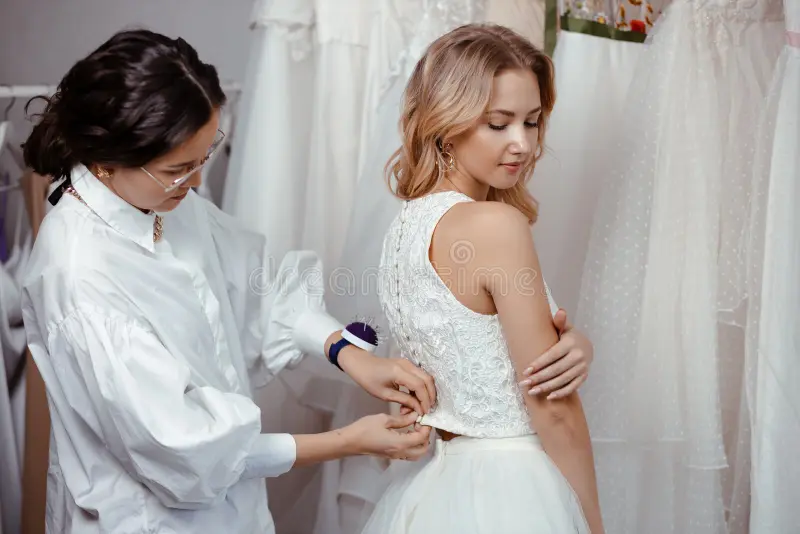 We aim to make the process of designing your wedding dress as seamless and enjoyable as possible. Our design process begins with an in-depth consultation where we discuss your vision, preferences, and any inspiration you may have. We then present you with fabric options, sketches, and design ideas to help you choose the perfect elements for your gown. Once the design is finalized, our tailors will create a made-to-measure gown with precise fittings to ensure the dress is tailored to your body perfectly. Throughout the entire process, we keep you involved, making sure that the final creation is exactly what you envisioned for your special day.